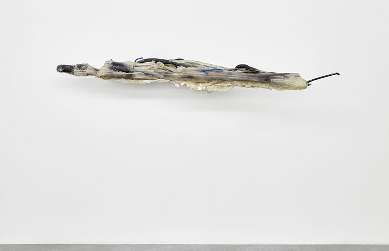 Giulia Cenci, Nero d’osso, 2017, urethan foam, rubber, black bones, metal bar cm 30 x 120 x 83
