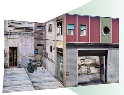 Botto & Bruno, mettendo a frutto la lezione dall’hip hop, invece che dipingere o fotografare uno scorcio di città, ne ricreano uno sforbiciando gli elementi da scorci di città diverse. Ed ecco che un nuova realtà prende forma. Un lampione proviene da uno scatto fotografico, il palazzo che lo sovrasta da un altro, la palina della fermata d’autobus sullo sfondo da un terzo e cosÏ via all’infinito.